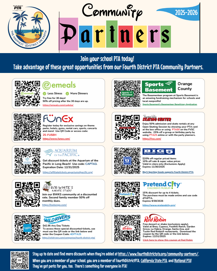 PTA Members receive exclusive benefits and discounts on entertainment, dining, wellness, retail, and services partners. Check out PTA Membership Perks below.